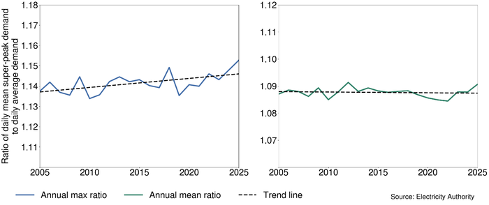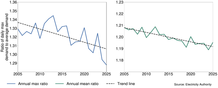 Figure 3 shows how the ratio of daily maximum demand to daily average demand has changed over time.