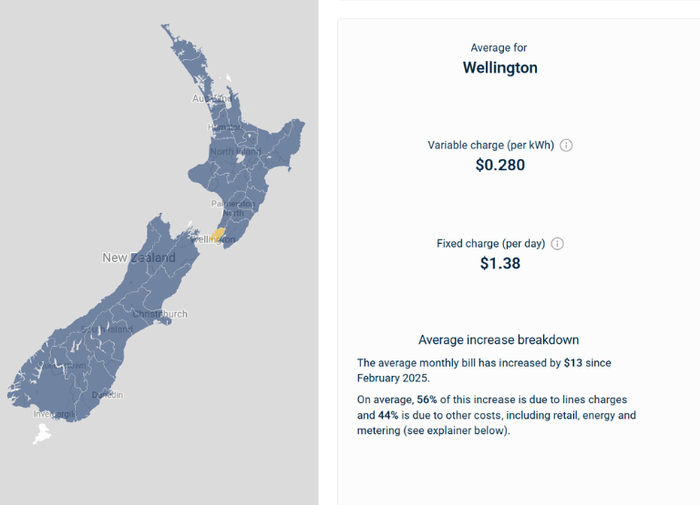 Distribution and transmission costs have decreased as a proportion of the bill over the last decade, due to the timing of when the Commerce Commission set regulated distributors’ revenues. This is because the last Commerce Commission reset in 2020 occurred during a period of low interest rates, resulting in reduced pressure on these costs relative to the other services included in a power bill.